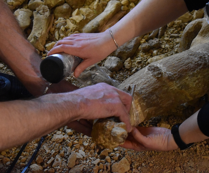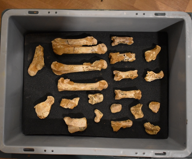 Pour laisser la place aux entreprises qui interviennent depuis quelques semaines au musée du château pour les travaux de réaménagement des différents espaces muséographiques, ces ossements ont été retirés des espaces d'exposition et conditionnés afin d'être conservés en réserve pendant la durée des travaux.