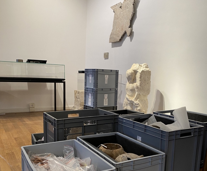 Pour laisser la place aux entreprises qui interviennent depuis quelques mois au musée pour les travaux liés à la restructuration complète des différents espaces muséographiques, œuvres, objets, meubles, spécimens... doivent être déplacés : mise en caisse, dépoussiérage, numérisation. Bien que loin du regard des visiteurs, le chantier avance à un rythme soutenu.