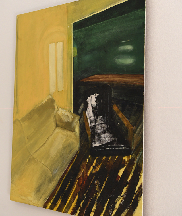 Ici, le travail se resserre. Dans l’intimité d’un intérieur marqué par le temps, les œuvres se frottent aux traces laissées, aux résidus parcellaires qui tapissent la mémoire des lieux. Entre poussière et oubli, elles révèlent ce qui se cache dans les interstices : des bribes de souvenirs, des échos de luttes intérieures, des gestes qui tentent de faire surgir ce qui semblait effacé.